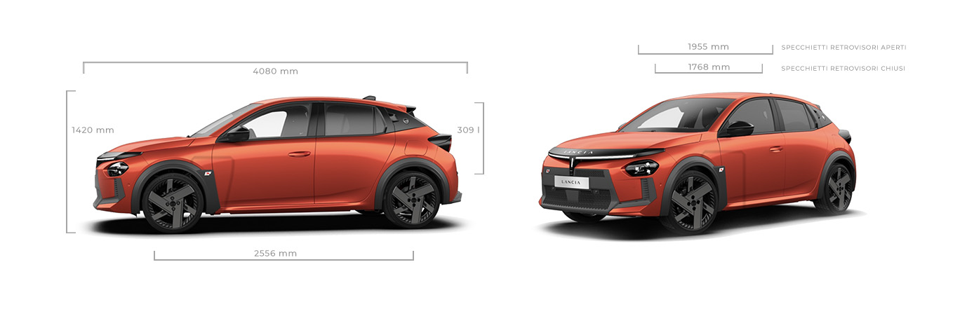 Conçue pour l'agilité et la présence, la nouvelle Ypsilon HF 280 ch présente des proportions compactes qui conviennent à la fois à une conduite dynamique et à une polyvalence au quotidien. Mesurant 4080 mm de long et 1768 mm de large (1995 mm avec les rétroviseurs déployés), elle offre une silhouette audacieuse mais aérodynamique, idéale pour naviguer en toute confiance dans les rues étroites de la ville. Sa hauteur de 1 440 mm contribue à abaisser le centre de gravité, améliorant ainsi la précision dans les virages et la stabilité à grande vitesse. Avec un empattement de 2 540 mm, la Ypsilon HF 280 ch allie performances athlétiques et espace intérieur, offrant une conduite confortable et sereine.