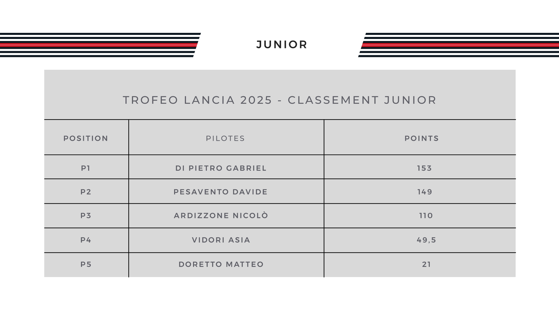 Standings - Cassino 2025